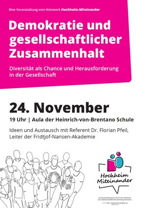 Am Montag, den 24. November 2025, findet in der Aula der Heinrich-von-Brentano-Schule eine besondere Veranstaltung statt: Unter dem Titel „Demokratie und gesellschaftlicher Zusammenhalt – Diversität als Chance und Herausforderung in der Gesellschaft“ spricht der Politikwissenschaftler Dr. Florian Pfeil, Leiter der Fridtjof-Nansen-Akademie für politische Bildung in Ingelheim.